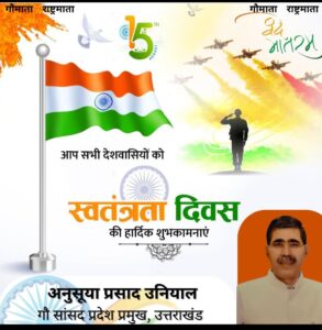 अनुसूया उनियाल ने स्वतंत्रता दिवस की बधाई दी