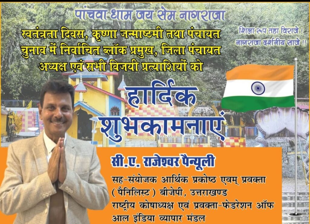 देहरादून : भाजपा के आर्थिक प्रकोष्ठ सह संयोजक राजेश्वर पैन्यूली ने 79वें स्वतंत्रता दिवस की पूर्व संध्या पर राज्यवासियों एवं देशवासियों को हार्दिक बधाई और शुभकामनाएं दी है। स्वतंत्रता संग्राम के वीर सपूतों को नमन करते हुए उन्होंने कहा कि राष्ट्रभक्तों के साहस, त्याग एवं बलिदान के फलस्वरूप ही 15 अगस्त 1947 को हमारा देश आजाद हुआ। हम उन सभी स्वतंत्रता सेनानियों को श्रद्धा सुमन अर्पित करते हैं, जिन्होंने आजादी की लड़ाई में अपने प्राणों की आहूति दी।